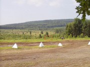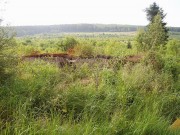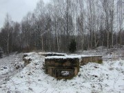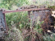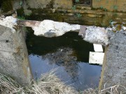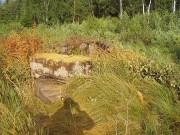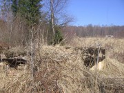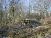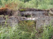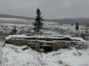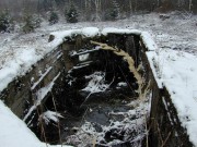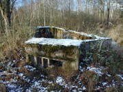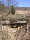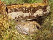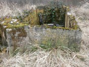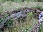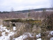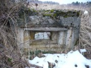 Josef Frančík (20.3.2008) Cvičný Lo objekt typu C nemá odpadní trubku z vnitřku střelecké místnosti tak jako bojové LO na Plzeňské čáře. Proto se v něm stále drží srážková voda. V současnosti (18.III.08) má poškozený beton v místě vstupu na horní části rámu. Použité železné výztuhy uložené do betonu jsou pouze o průměru 10 mm. Z části se zachovalo i dřevěné ostění střílen o síle prken 20mm. Střílny nemají instalovány trny pro fixaci okenic tak jako bojové LO na Pl.č. Výklenky pod střílnami jsou v tomto případě odlišné od původně sousedního typu A tím, že jsou v řezu dle svislé osy trojúhelníkovité. Absence stropní desky byla v tomto případě úmyslná. Ale archivní dokumenty které by tuto skutečnost dostatečně vysvětlily, nebyly zatím nalezeny. |